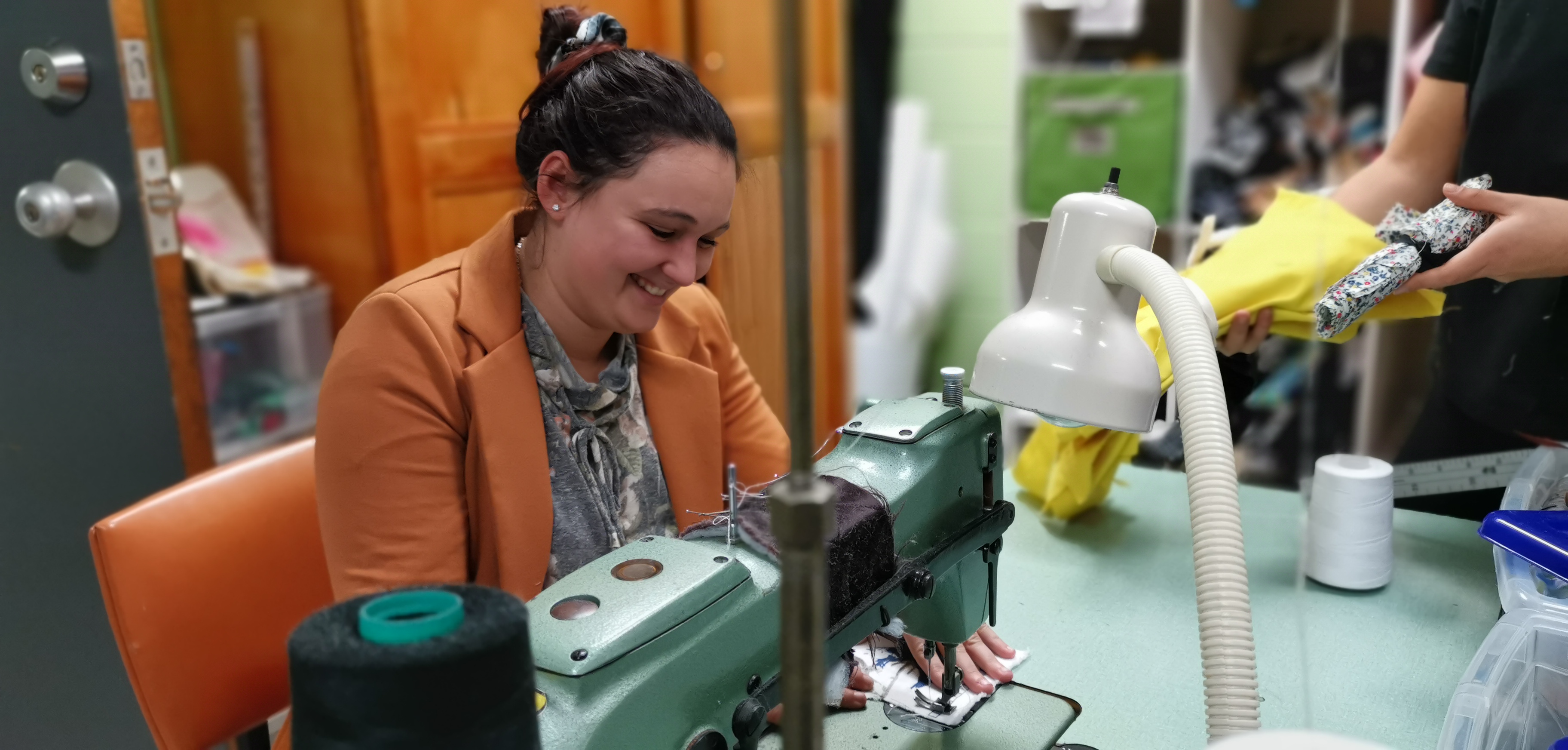 Dans le sous-sol du bâtiment principal du Cégep, on retrouve un petit atelier de couture. Quelques étudiantes sont en train de trier les retailles de tissus qu’elles sont allées chercher au département de design de mode. Selon Renée Lemieux, conseillère à la vie étudiante, cette initiative permet d’éviter d’envoyer près de 60% des retailles de tissus aux sites d’enfouissements.