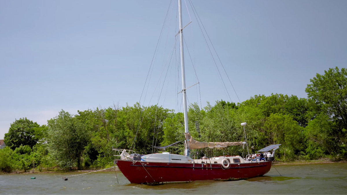 Sur les eaux bleues du Saint-Laurent, bordé par les feuillus des rives de Pointe-aux-Trembles et de l’île Sainte-Thérèse, Sébastien Mignault vit sur son voilier, été comme hiver