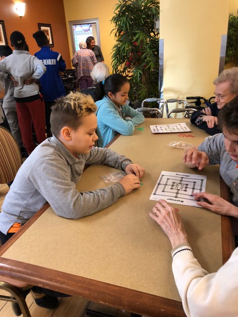Revenus à l’école, les enfants ont pour mission de créer des activités ayant pour objectif de donner au suivant. Ainsi, durant le mois de décembre, les enfants se sont rendus à la résidence Soleil chaque semaine pour jouer à des jeux de société avec leurs aînés.