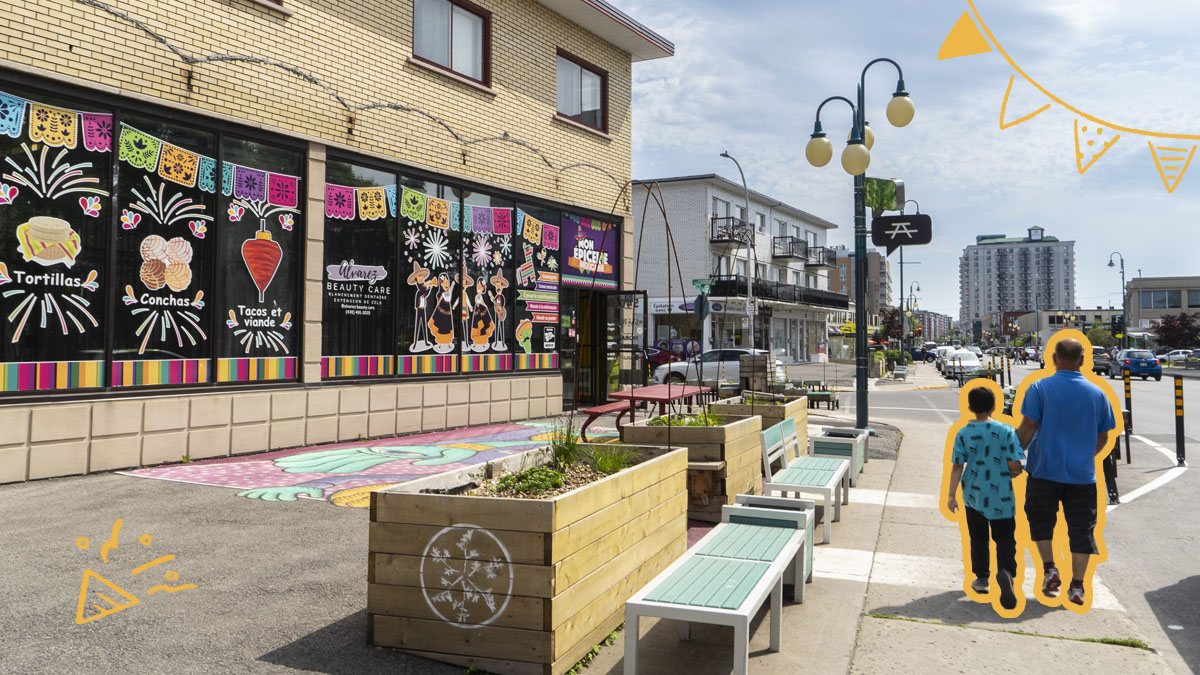 Principale artère de Saint-Léonard, la rue Jean-Talon Est est reconnue pour sa diversité de commerces, de restaurant et de services.