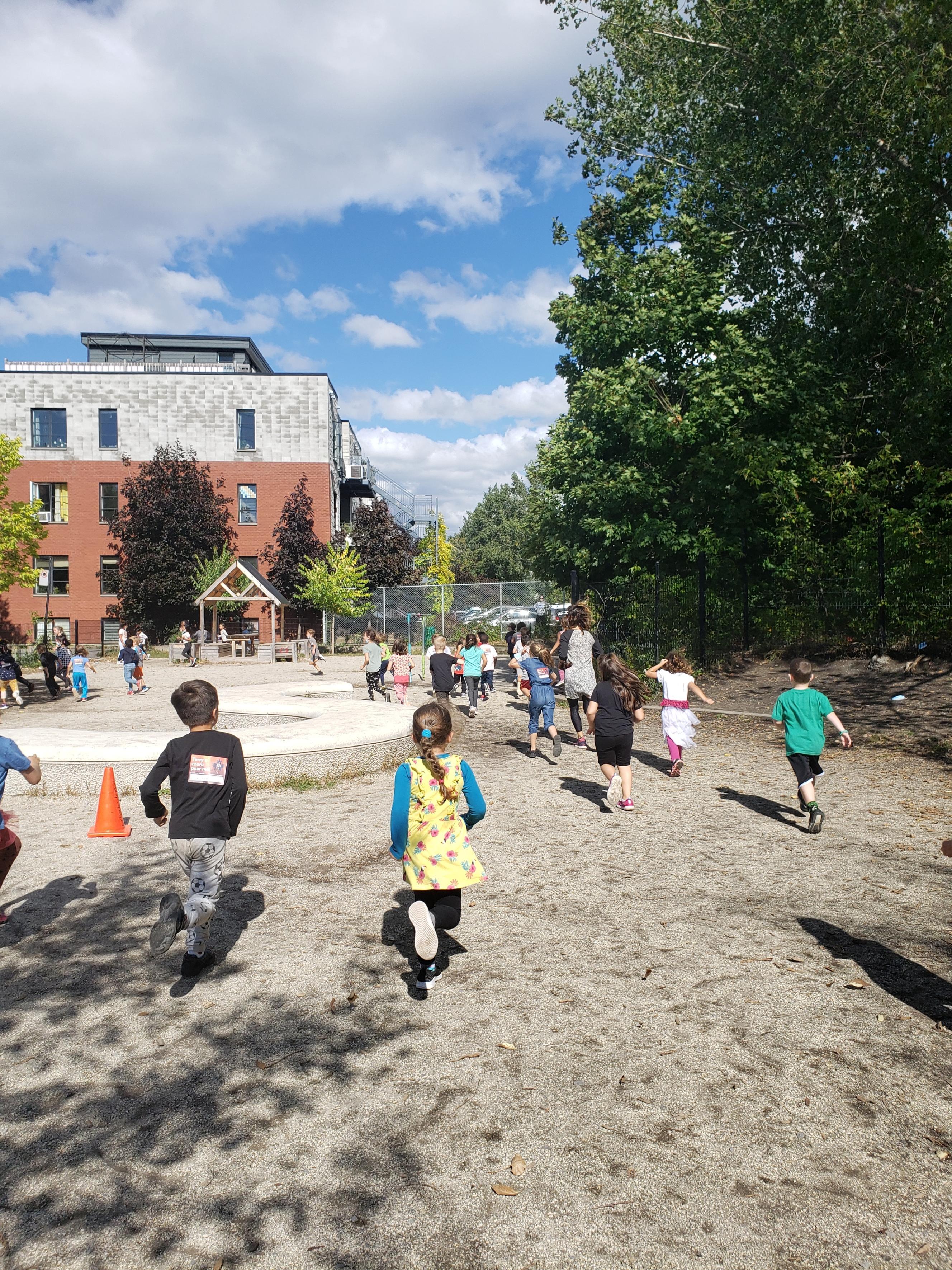 Les élèves du préscolaire et du premier cycle se sont dégourdi les jambes une quinzaine de minutes dans la cour d’école, alors que les enfants du deuxième et troisième cycle ont couru au parc Saint-Gabriel une vingtaine de minutes.