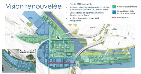 Les activités résidentielles, et non les activités économiques, vont être le moteur du développement du secteur Bridge-Bonaventure, prévoit un regroupement de grands promoteurs. Afin d’assurer la construction rapide de logements, le Consortium Vision Bridge-Bonaventure réclame également que la Ville de Montréal revoie son cadre réglementaire de zonage pour mettre de côté tout processus référendaire.
