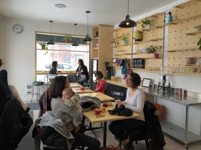 Dans le café on retrouve des parents avec la marmaille aux bras, tempête de neige et écoles fermées obligent, et d’autres personnes du quartier. Si plusieurs d’entre eux sont simplement venus chercher un moment de répit, quelques-uns discutent avec les propriétaires et découvrent la mission de Mon Atelier.