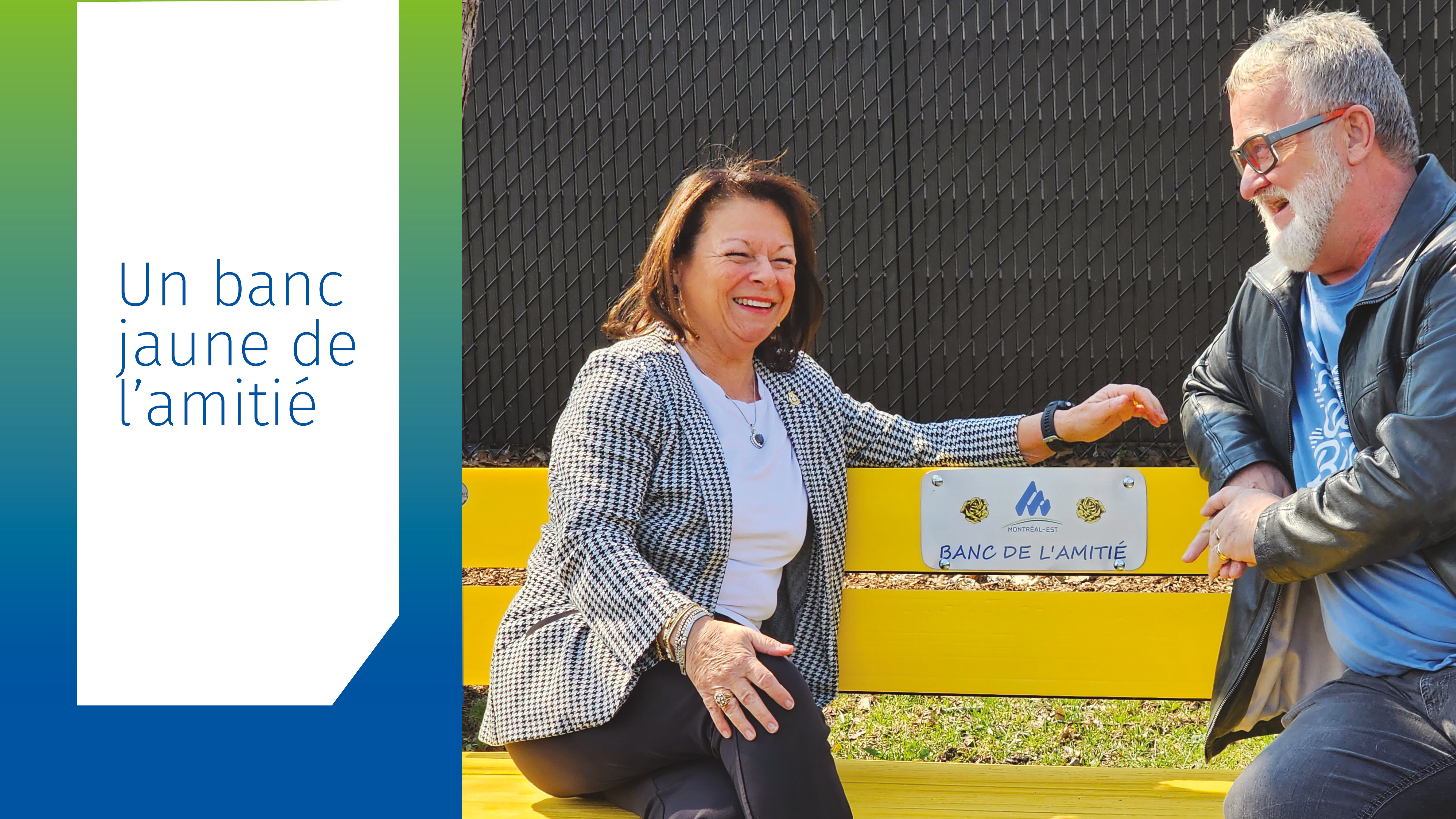 Depuis peu, des bancs jaunes parsèment les parcs de la ville de Montréal-Est avec une mission unique : briser l’isolement. On compte précisément sept bancs jaunes sur le territoire et leur